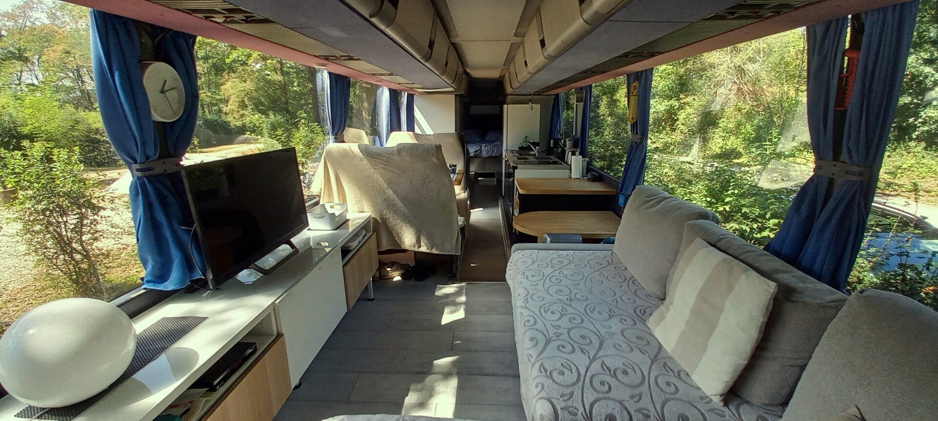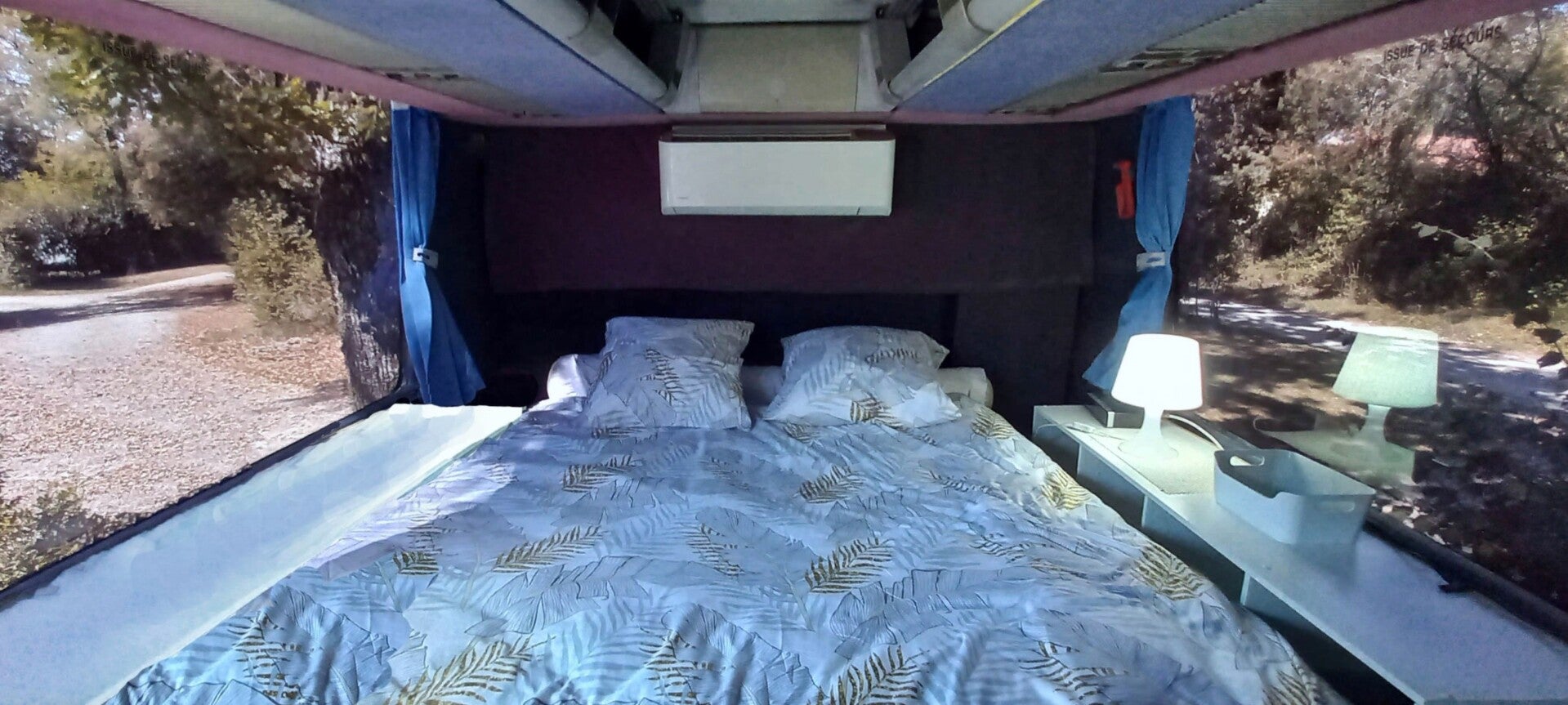 À l'intérieur, nous avons pensé à tout pour garantir votre confort. Le Bus Iliade est équipé d'un coin cuisine entièrement fonctionnel, d'un espace salon douillet avec convertible, d'une chambre confortable avec un grand lit double de 180 x 200, et d'une baignoire. Chaque détail a été aménagé pour optimiser l'espace et vous offrir toutes les commodités nécessaires pour un séjour agréable, comme à la maison, mais avec la touche d'originalité en plus.